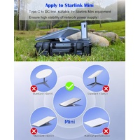 - Usage Guide: Connect the USB-C end to a 65W+ PD 20V-compatible power bank, and the DC end to your Starlink Mini.⚠️ Note: Your power bank must support 65W+ PD 20V protocol. Compatible with 100W USB-C PD power banks/chargers/power stations; not suitable for devices under 65W. This is not a buck-boost converter and cannot be used for phone charging.