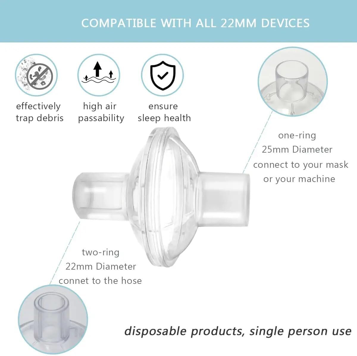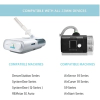 Universal Connection: Works with all CPAP machines like ResMed, Philips Respironics and other popular CPAP machines. Works with 22mm tubing and 25mm mask elbows.