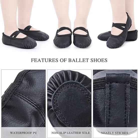 Women's Ballet Shoes – Ballet Shoes for Girls – Black – Soft PU Leather Dance Shoes with Non-Slip So