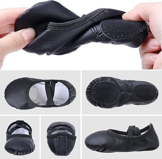 Women's Ballet Shoes – Ballet Shoes for Girls – Black – Soft PU Leather Dance Shoes with Non-Slip So