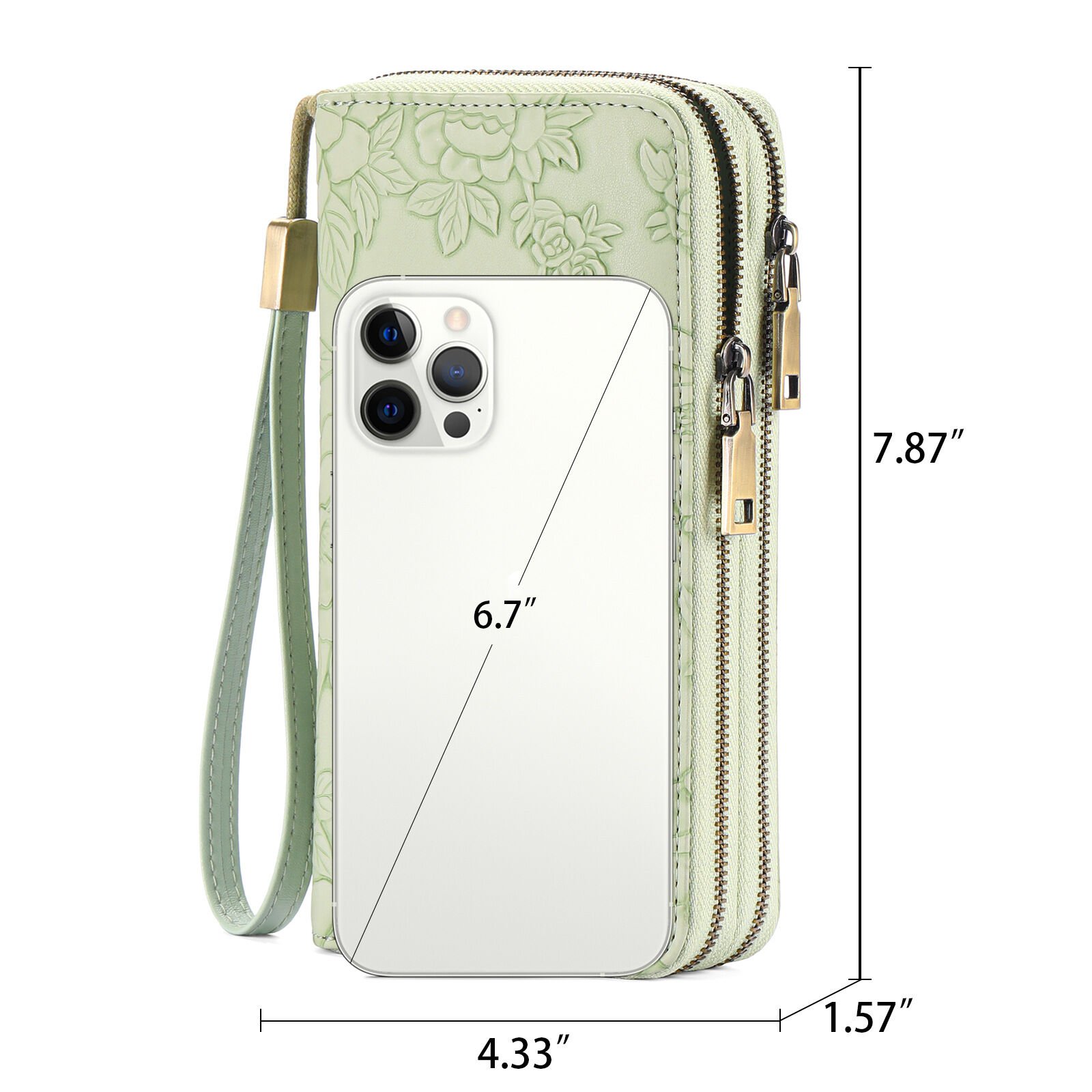 Combine elegance, exceptional capacity, and ultimate organization with this beautiful women's wallet clutch. Featuring a sophisticated floral embossed design and a practical double-zipper layout, this wristlet is designed to hold everything you need, including your large smartphone, while keeping it all neatly arranged.
