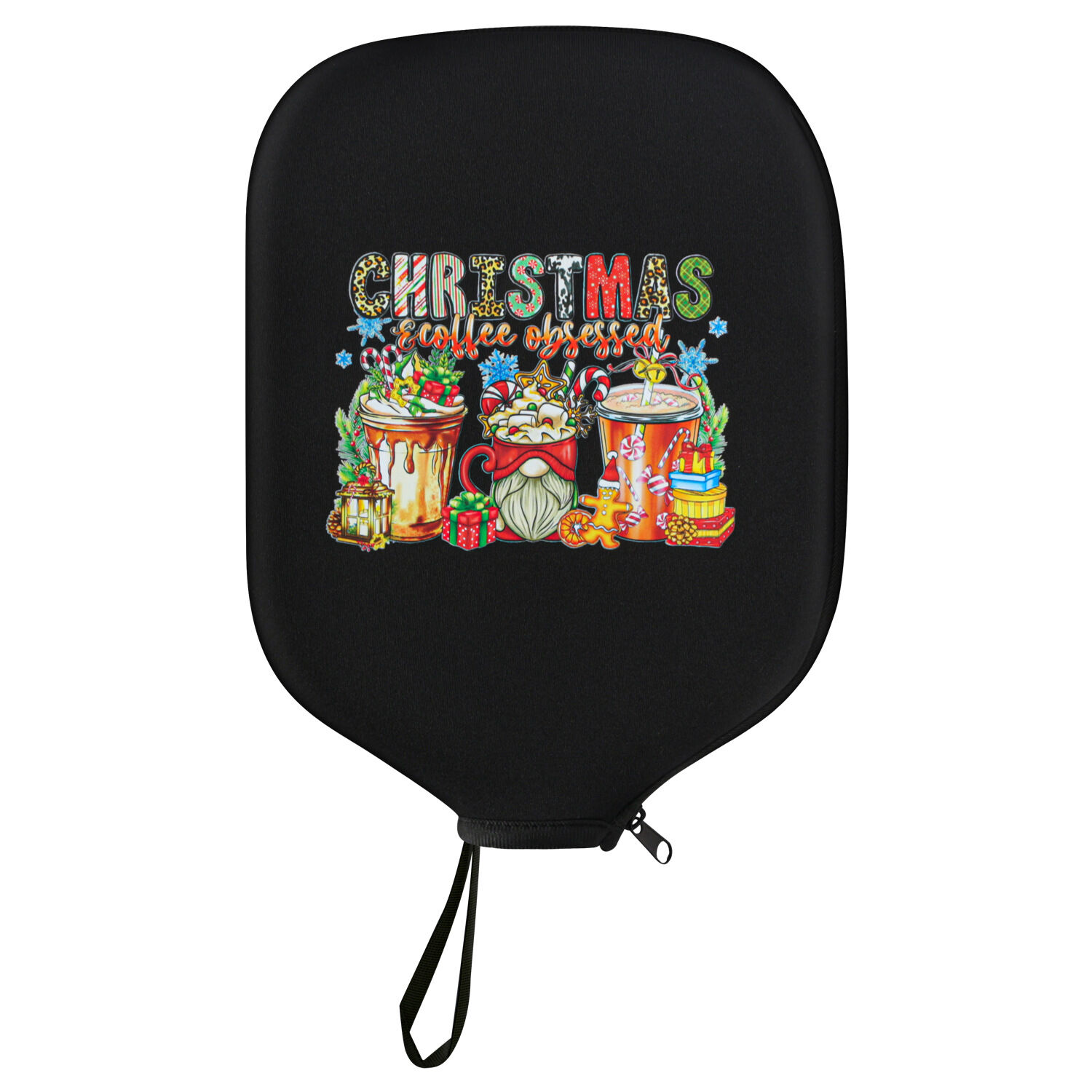 Black Neoprene Pickleball Paddle Cover Protective Case with Fun Graphic Design Durable Beach Tennis