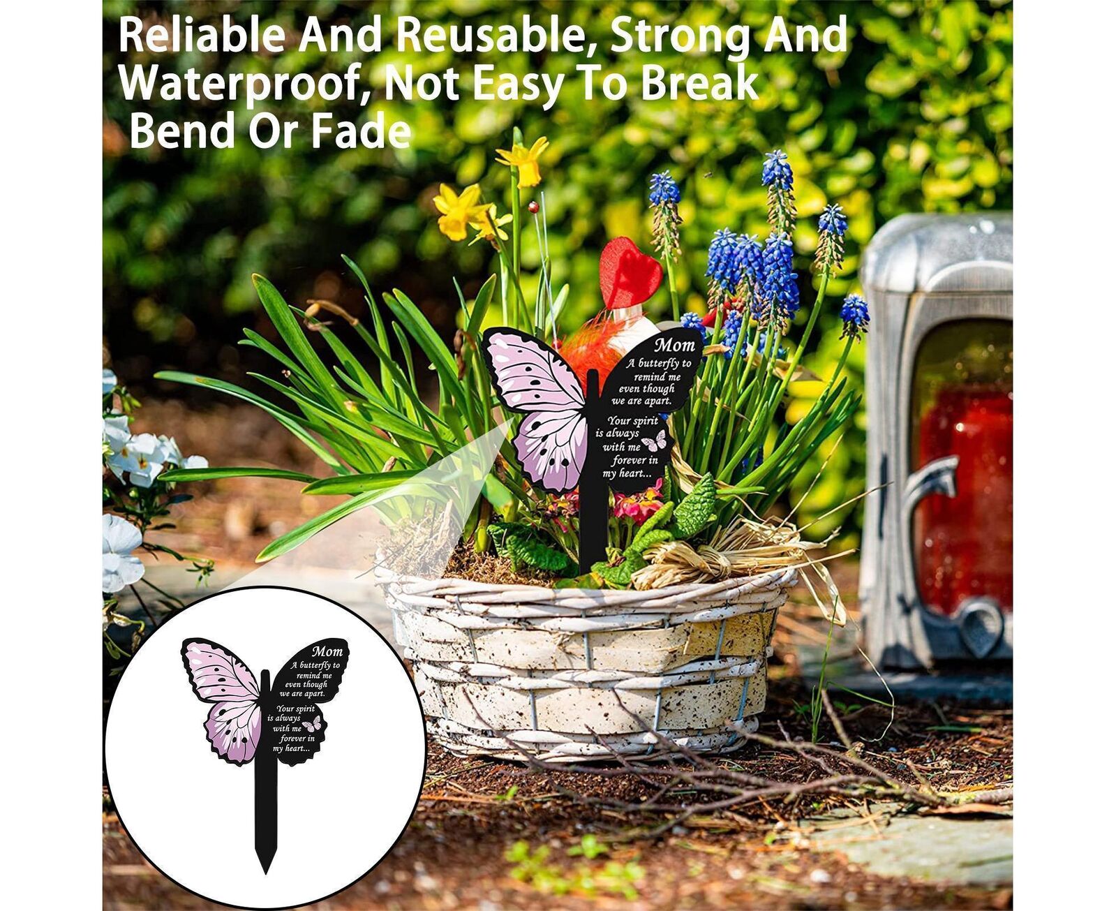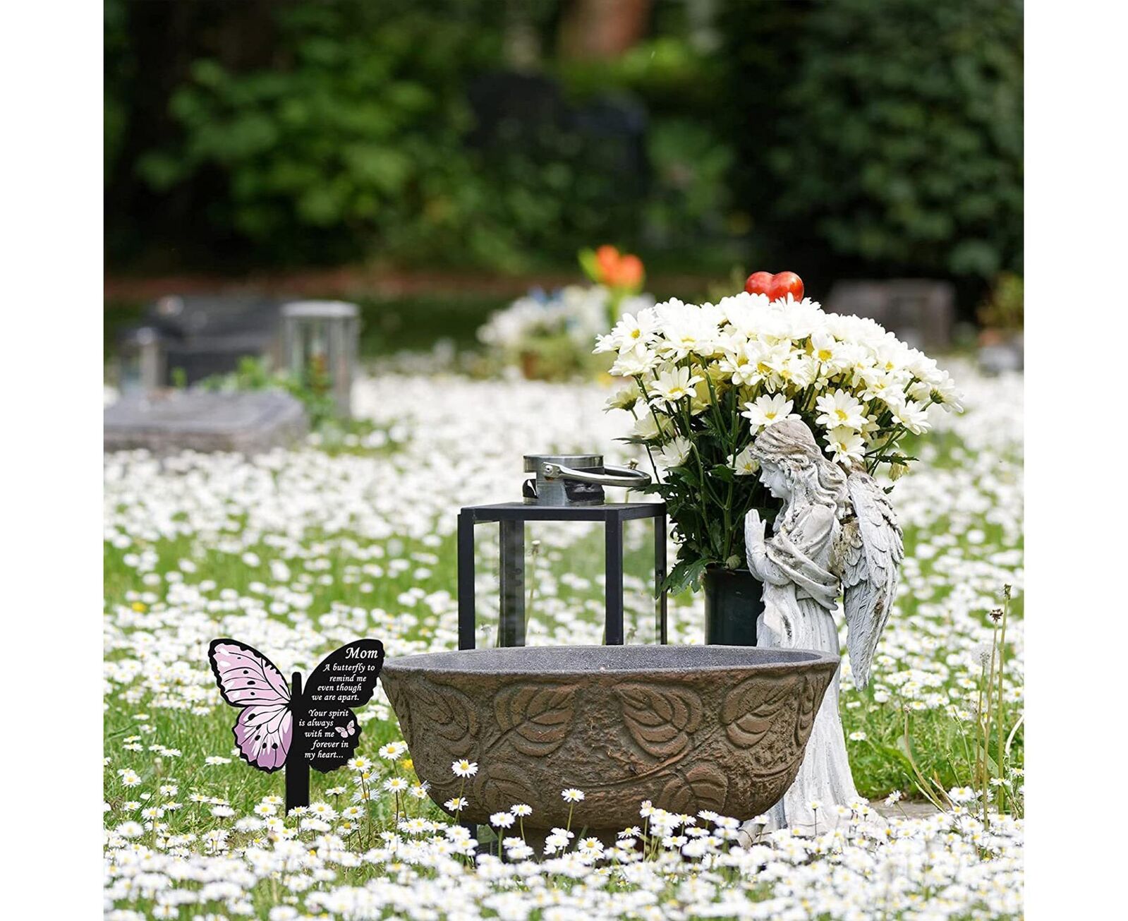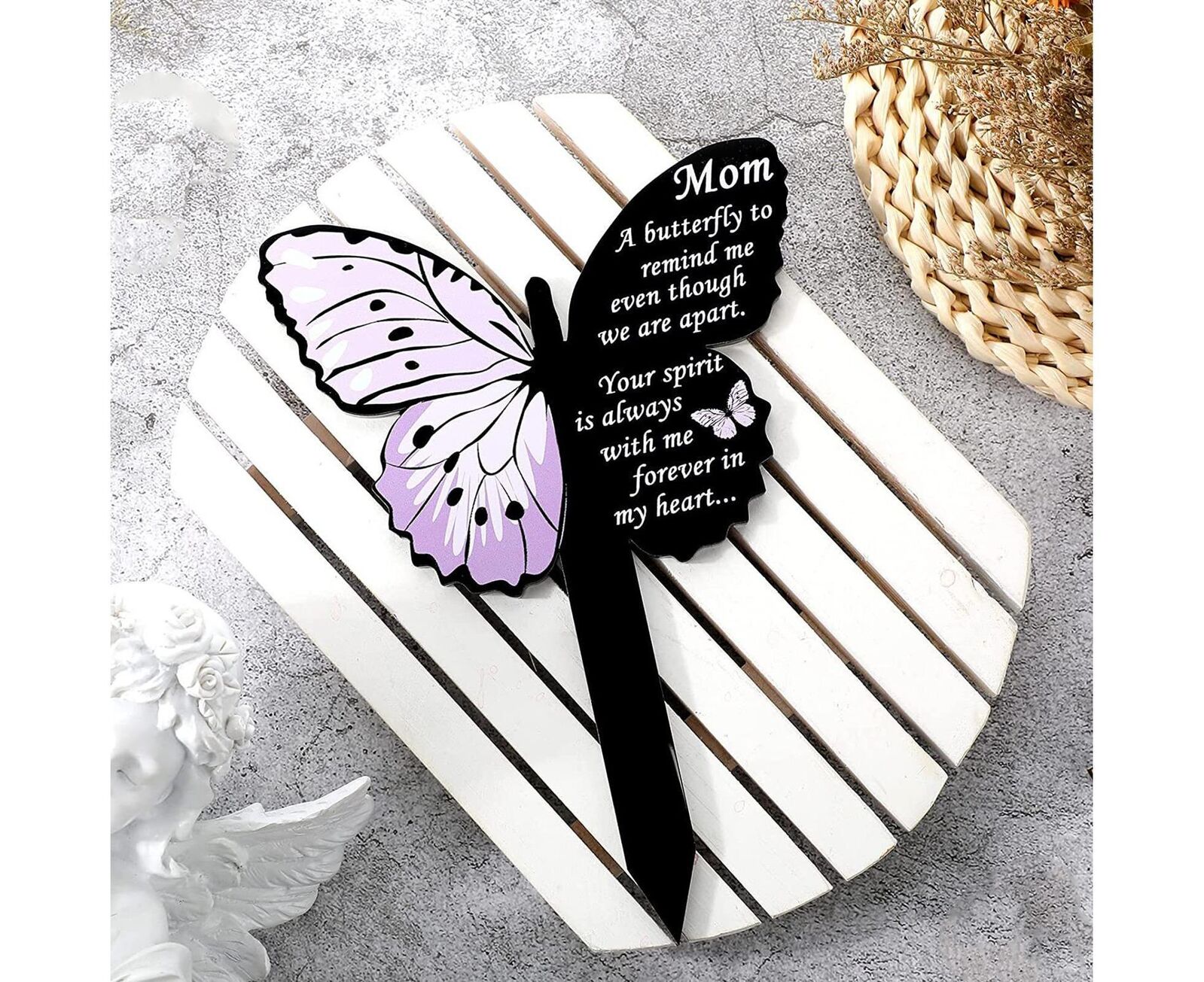 Such insert is designed in the shape of a butterfly with comforting sentences printed on it. You can install it next to the cemetery to mourn and express your grief and memory.