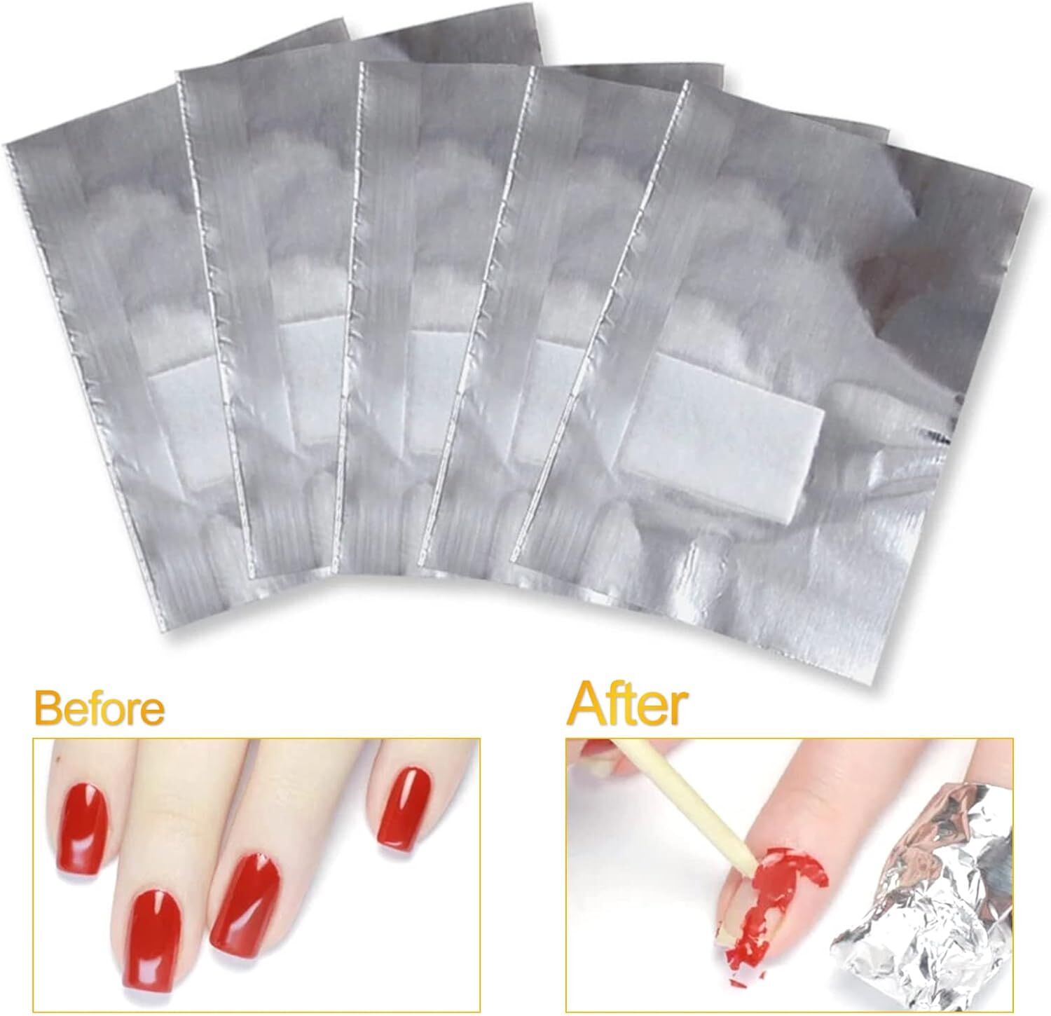 100 foil nail stickers, foil for gel nails, nail foil remover with pre-installed lint-free cotton pa