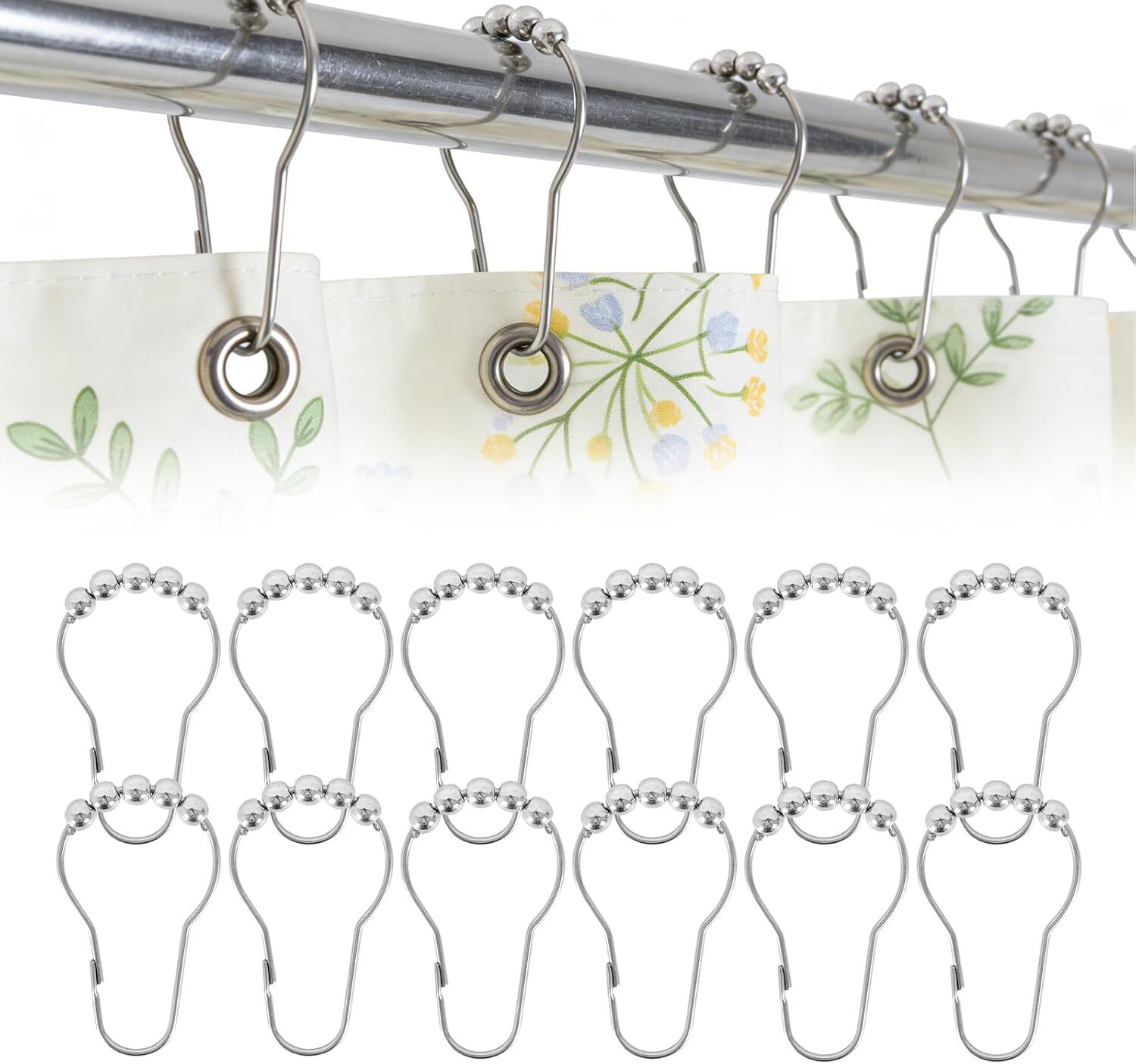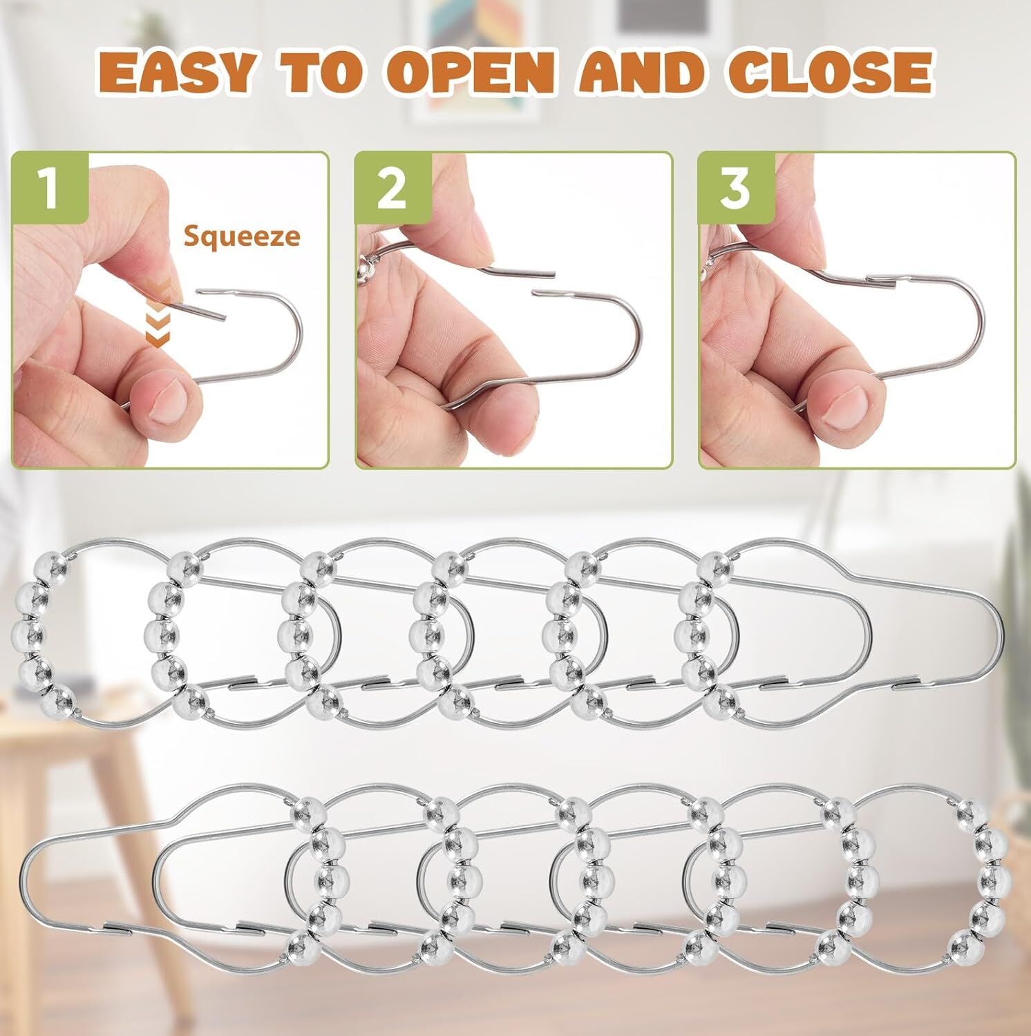 [Smooth sliding, easy adjustment] These shower curtain rings are equipped with specially designed spherical balls to reduce friction, allowing the shower curtain to move more smoothly and making adjustments quick and easy