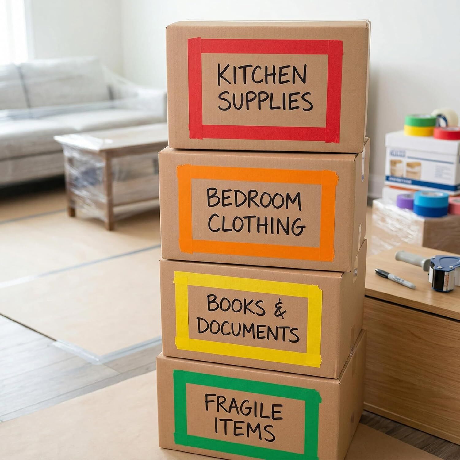 EFFORTLESS ORGANIZATION FOR HOME OFFICE: Say goodbye to clutter. This writable masking tape is your secret weapon for streamlined organization. Perfect for color-coding moving boxes, labeling food containers, organizing files, or marking cables. It sticks securely to almost any surface—plastic, glass, l, and paper—and makes organization simple and clear.