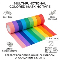10Roll Colored Masking Tape, 33 Ft x 1 inch Rainbow Painters Tape for Crafts & Labeling, Craft Suppl
