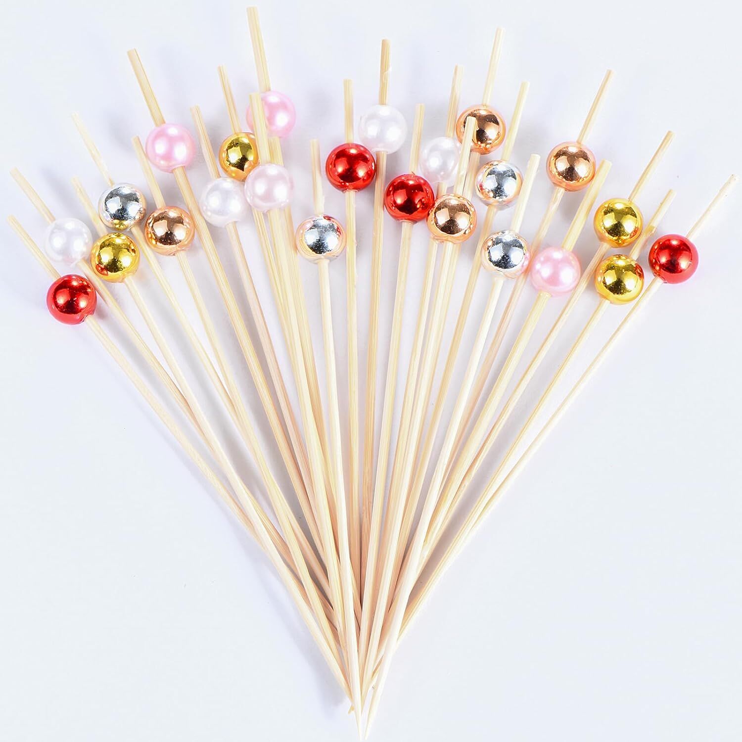 PACKAGE INCLUDES: 100 pieces of beads-shaped bamboo toothpicks, length 12cm / 4.77in, multiple colors for you to choose