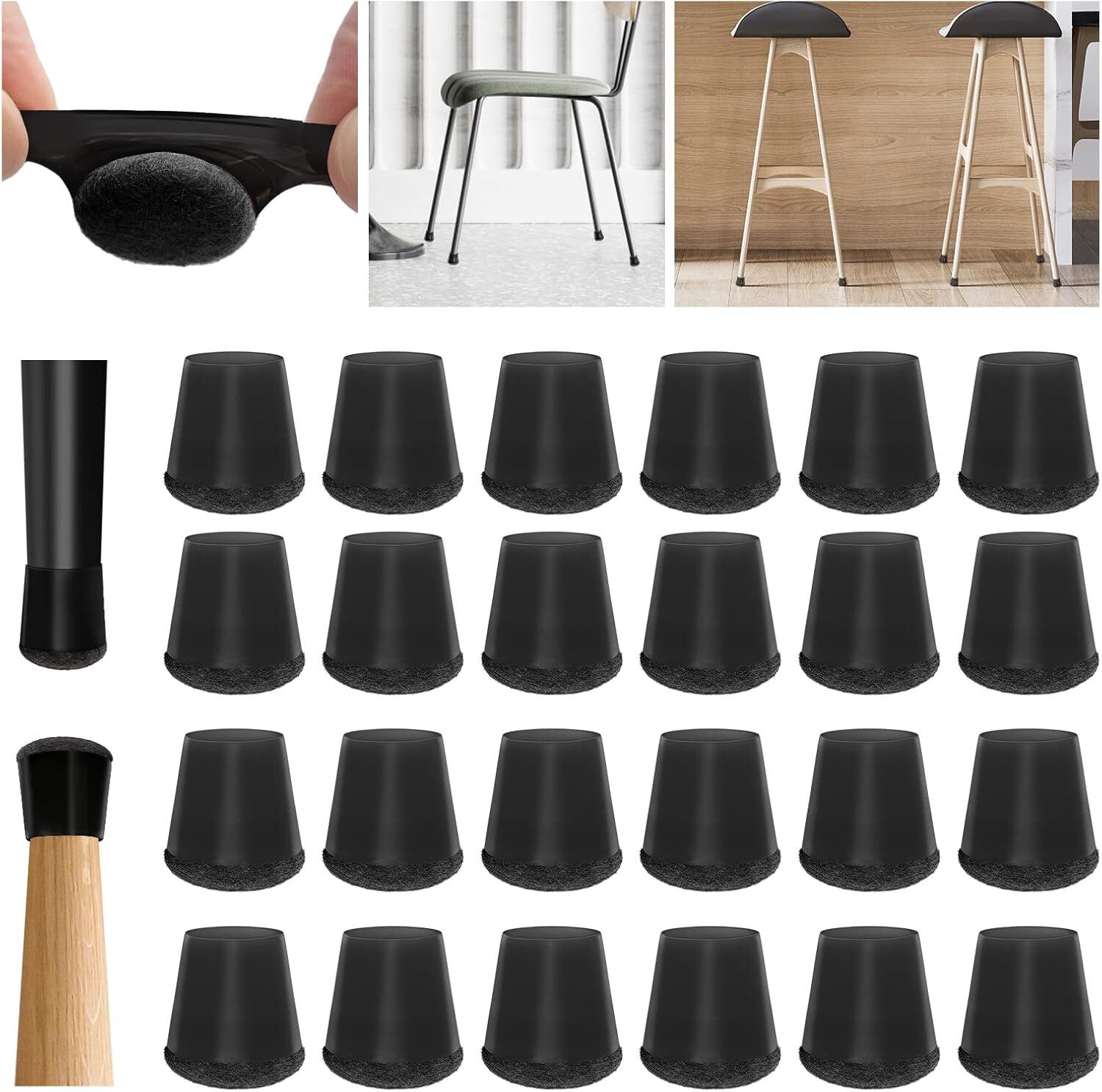 Wide range of use:Can be suitable for most shapes of round,square chair feet,such as dining room tables and chairs,patio chairs, kitchen chairs,sofa stools,beds,etc