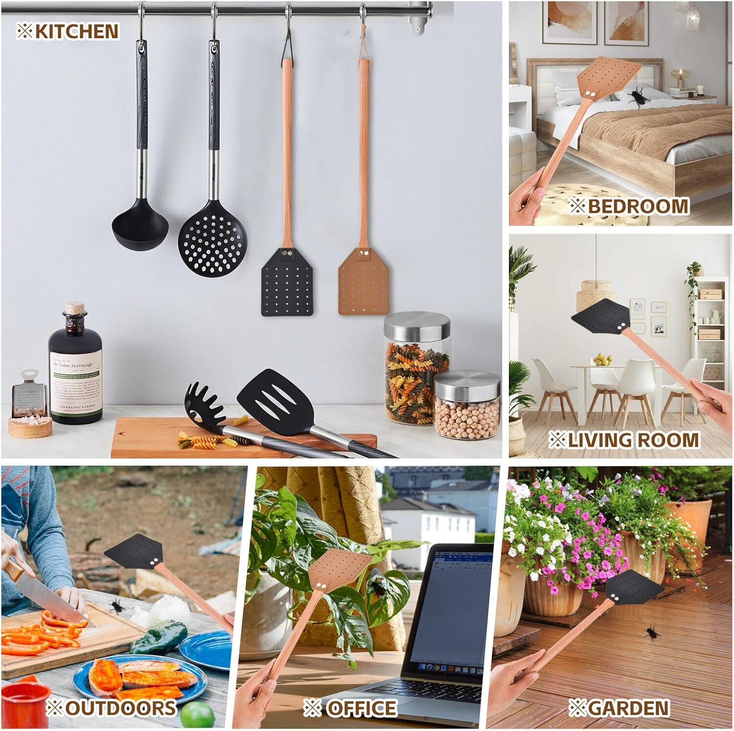 【Reliable and Durable Structure Pest Control】Our leather fly swatter uses stainless steel rivets to connect the leather swatter head to the wooden handle, which is very sturdy and there is no need to worry about the swatter head falling or cracking during use. The sturdy structure ensures that the racquet head can withstand repeated use, providing you with a safe and reliable insecticidal experience.