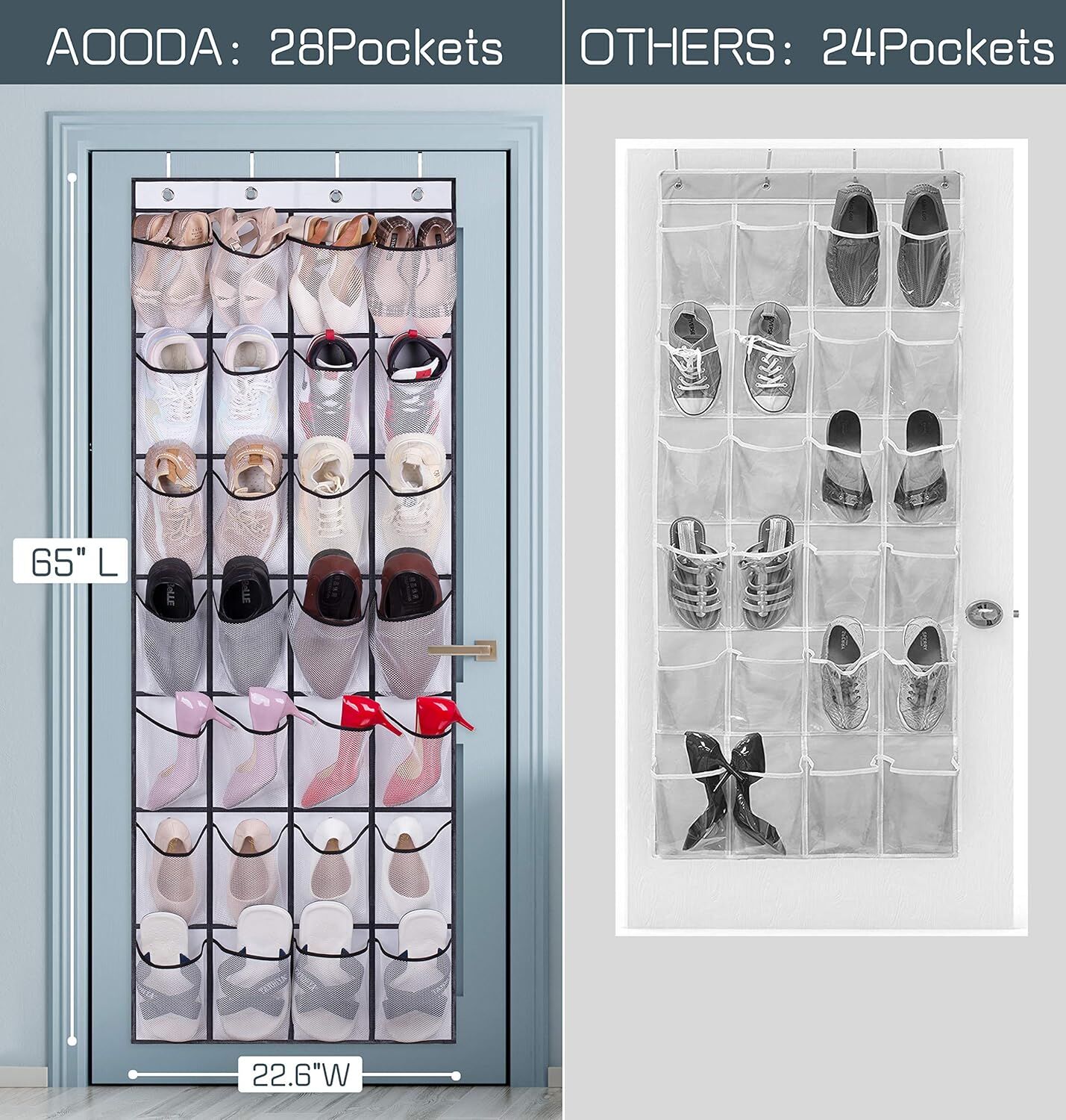 28 Large Mesh Pockets Over The Door Shoe Rack, Hanging Shoe Organizer for Closet Hanging Shoe Rack H
