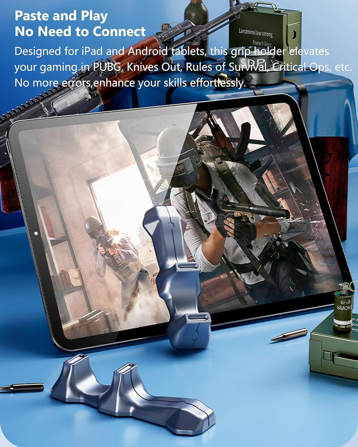 【Gaming Precision in Your Hands】Designed for iPad and Android tablets, this grip holder enhances your gaming experience in popular titles like PUBG, Knives Out, Rules of Survival, Critical Ops, and more. Say goodbye to operational errors and elevate your gaming skills effortlessly.