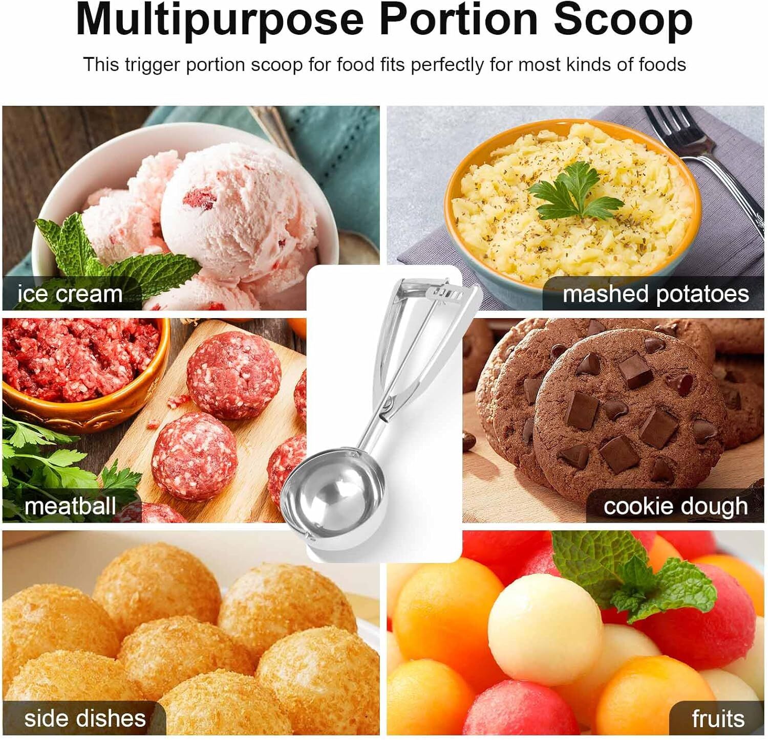 Versatile Kitchen Scoop: This portion scoop for food is ideal as ice cream scoop, cookie dough scoop, cupcake scoop, mashed potatoes scoop, meatball scoop, melon baller scoop, side dishes scoop. Also can use to measure portions for pancakes, molded rice