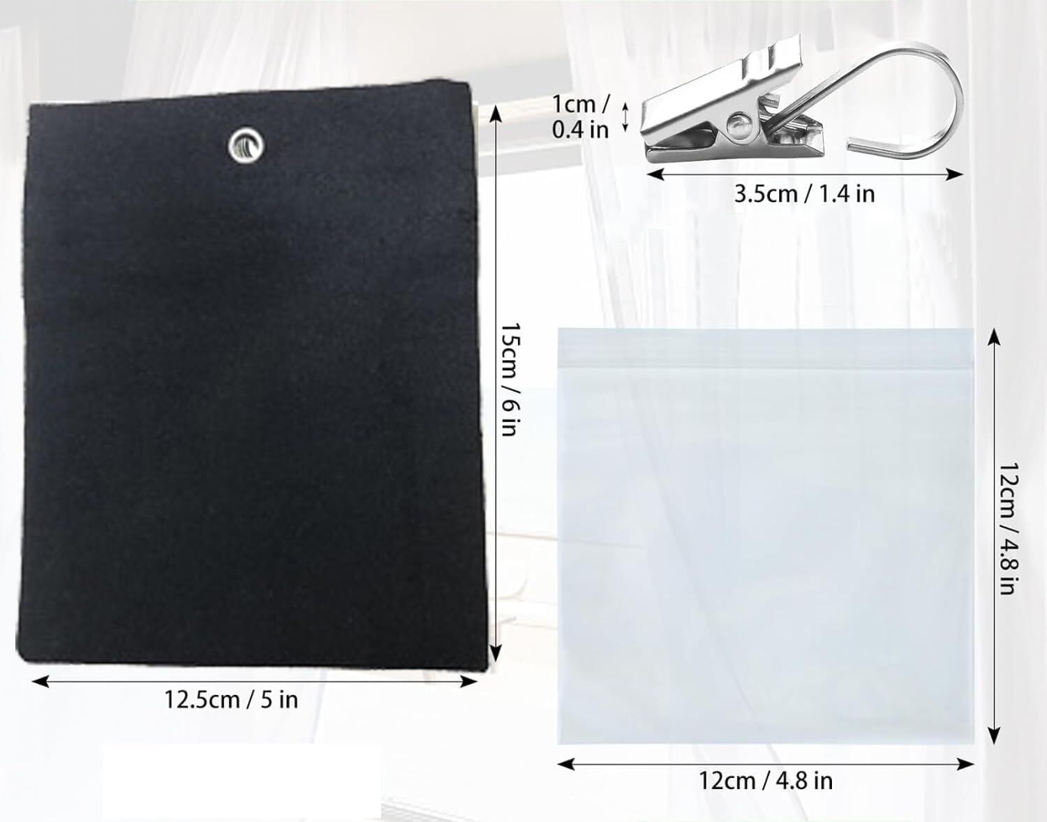 EASY INSTALLATION: Simple clip-on design allows quick attachment to curtain bottoms without requiring any tools or special skills.Put sand, pebbles or other heavy objects into the PE bag, put it into the curtain weight bag and then use velcro to stick it firmly, fix the stainless steel clips to fix it on the curtain.